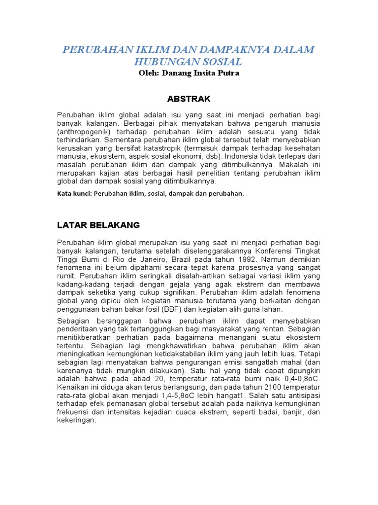 Perubahan Iklim Dan Dampaknya Dalam Hubungan Sosial
