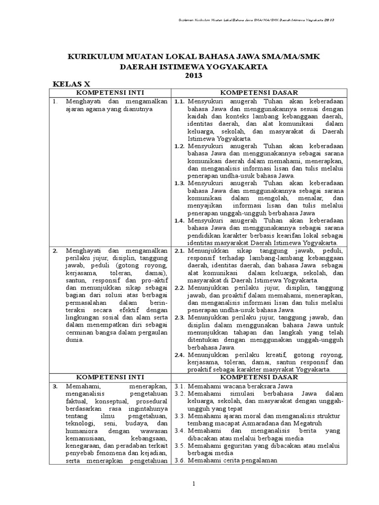 Materi Bahasa Jawa Kelas 10 Semester 1 Kurikulum 2013 Guru Ilmu Sosial. Selamat belajar dan semoga bermanfaat. Rpp Silabus Bahasa Jawa Kelas 1 Dan 4 Kurikulum 2013 Revisi 2018 Situs Kurikulum 2013.