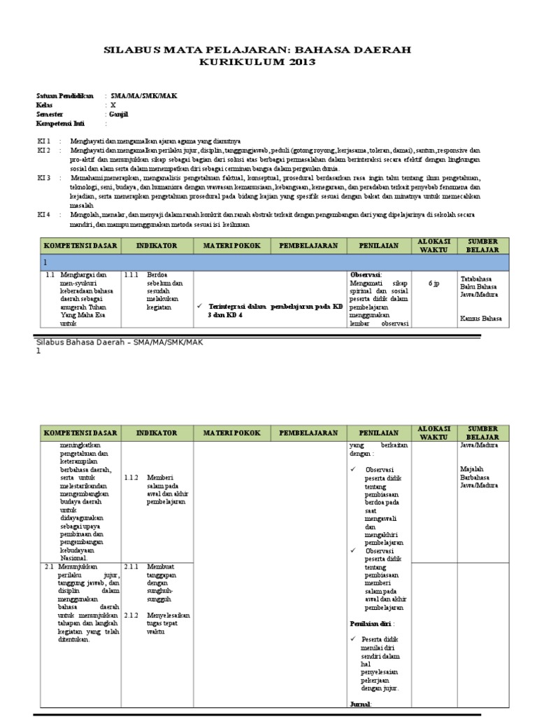 Rpp Silabus Bahasa Daerah Sunda Dan Jawa Kurikulum 2013 Untuk Sma Ma Smk Berkas Edukasi