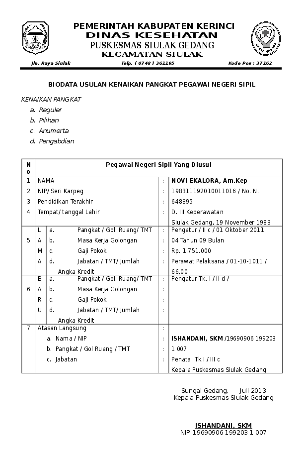 Doc Biodata Pegawai Negeri Sipil Nopi Ani Academia Edu