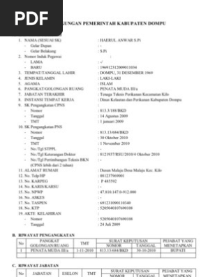 Contoh format biodata pns. Nikah Lajang Pekerjaan Selain Tenaga Keolahragaan. Laki-laki Perempuan Golongan Darah. 0 menganggap dokumen ini bermanfaat Tandai dokumen ini sebagai bermanfaat.
