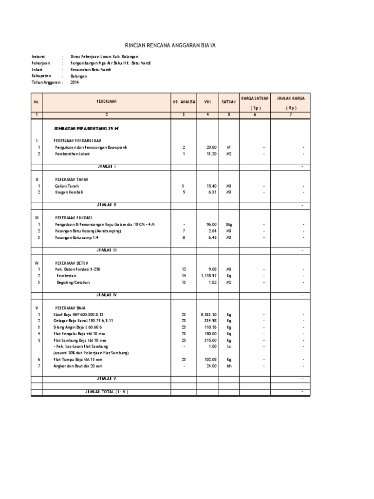 Contoh Rab Jembatan Rab Jembatan Excel Kaskus