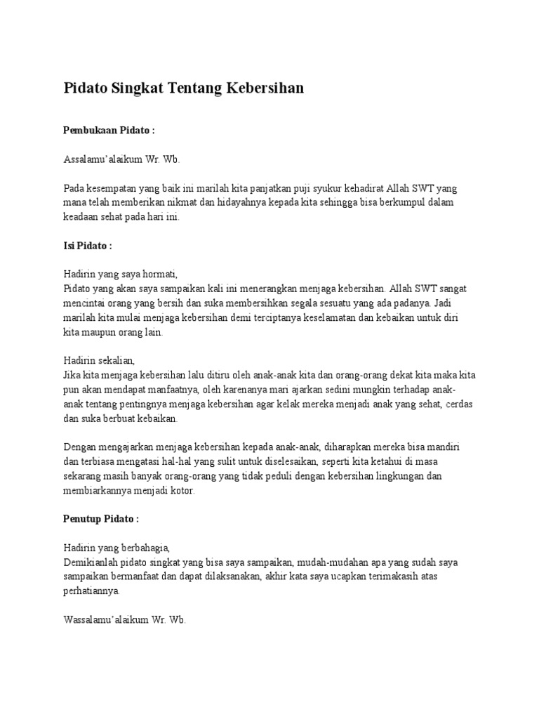 For more information and source see on this link. Akhir kata terima kasih atas kesempatan diberikannya waktu untuk menyampaikan sepatah dua patah pidato singkat ini jika ada salah kata semoga bisa dimaafkan. Kehidupan kita akan lebih teratur kebersihan terjaga dan semua kegiatan kita akan lebih terarah.