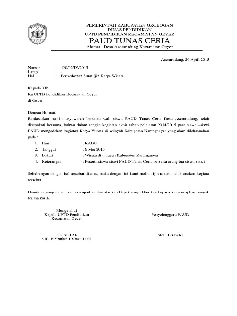 Contoh Surat Kunjungan Ke Tempat Wisata Cute766
