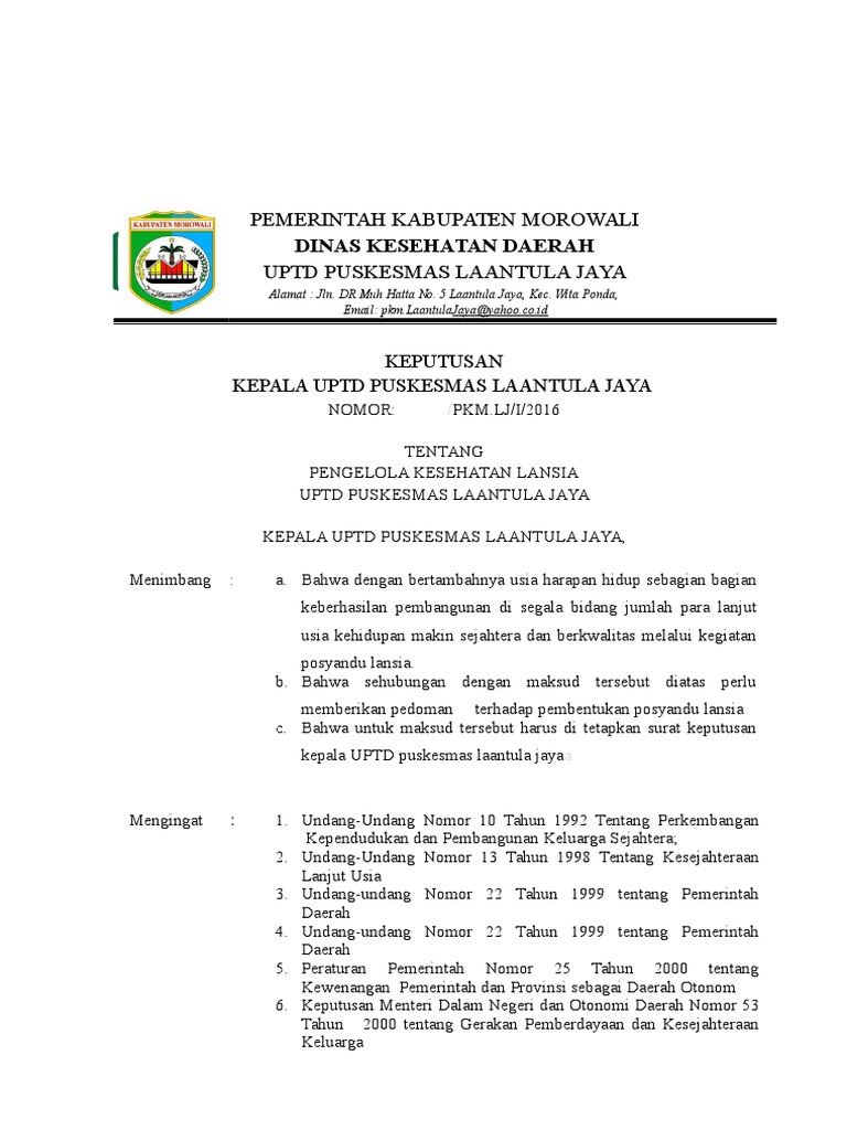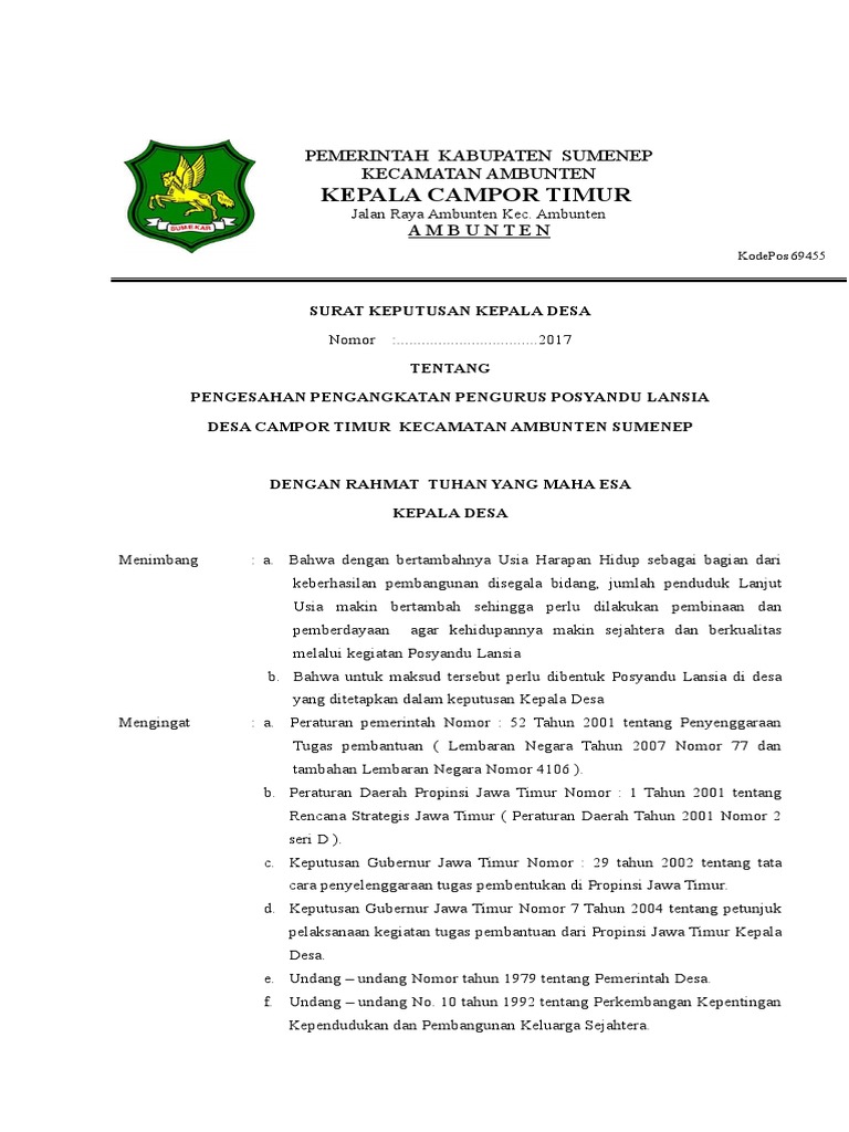 Sk pelaksana kegiatan 2019. Format sk posyandu kader. Sk Posyandu Lansia Rw.