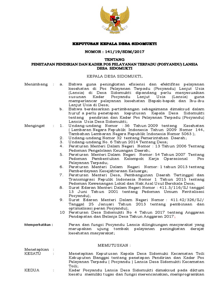 Sk Posyandu Balita Kalangketi. Pasal 2 Tujuan dari pembentukan posyandu lansia adalah. Terdapat Layanan online klik disini.